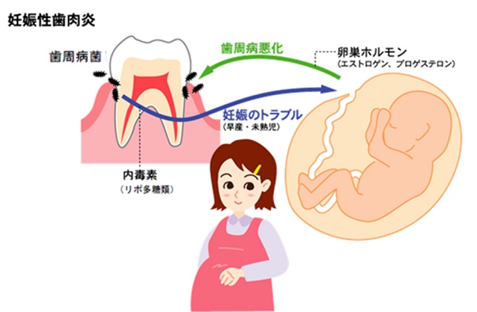 ・ 歯周病は早産や低体重児出産のリスクにも関係すると言われています