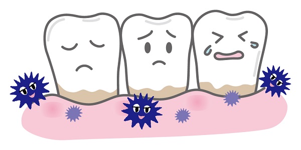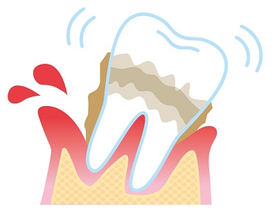 炎症が進行すると歯ぐきが少しずつ下がり、歯を支える骨が溶けて最後には歯が抜け落ちてし