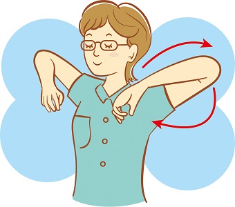 首、肩をほぐしましょう。