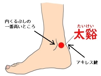 太 谿…うちくるぶしとアキレス腱の間のくぼみにあります。