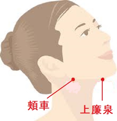 頬 車…あごのエラから1cm内側のくぼみにあります。